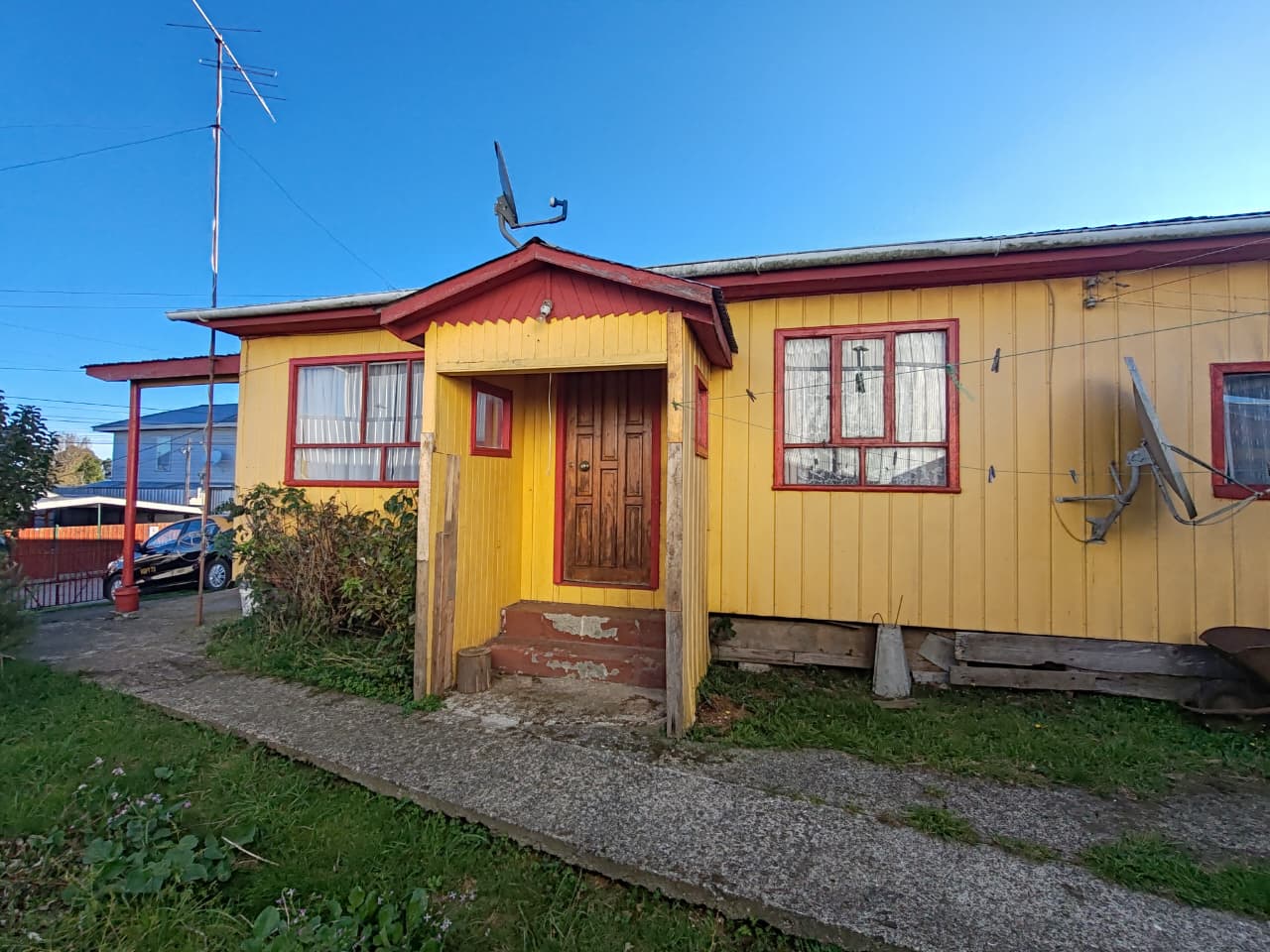 Estacionamiento para 1 vehículo, bodega pequeña en la entrada, bodega grande detrás de la casa principal